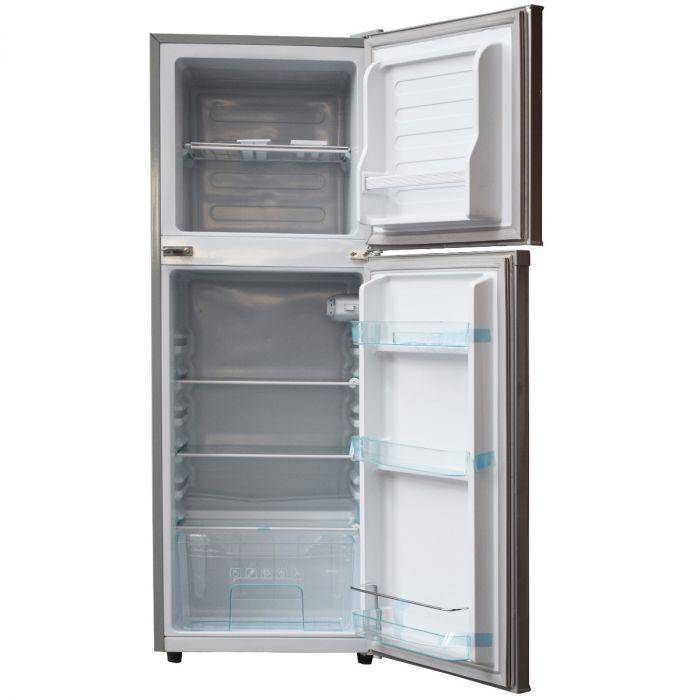 Store plenty of fresh and frozen foods and easily see what you need without having to search for it with this Ramtons double door refrigerator, 128L 2DOOR D-COOL SLV FRIDGE. It has a 128-litre total capacity to suit any household with sufficient space for fresh produce, drinks and everyday essentials. The ample glass shelves and door compartments give you extra room to adapt to your ever-changing grocery needs. Its powerful compressor takes energy efficiency to another level and helps you save more on power bills. The CFC-free component ensures that this fridge is an eco-friendly option.