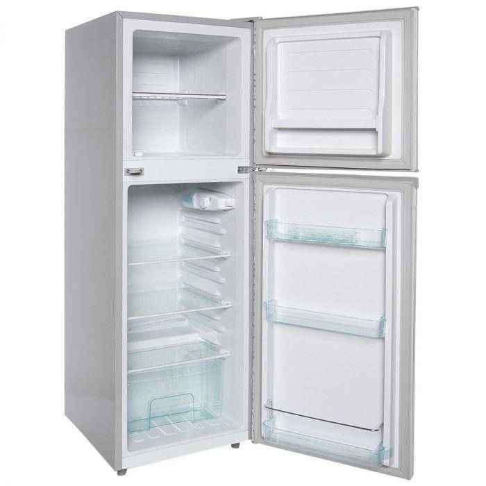 Store plenty of fresh and frozen foods and easily see what you need without having to search for it with this Ramtons 128L 2DOOR DCL BLUE FRIDGE double door refrigerator. It has a 128-litre total capacity to suit any household with sufficient space for fresh produce, drinks and everyday essentials. The ample glass shelves and door compartments give you extra room to adapt to your ever-changing grocery needs. Its powerful compressor takes energy efficiency to another level and helps you save more on power bills. The CFC-free component ensures that this fridge is an eco-friendly option.. With a capacity of 128 litres, this Ramtons refrigerator comes with ample space to store your favourite food items. The top freezer compartment is designed to give you quick access to your favourite frozen foods including ice cream and meal prep items. Powered by our Direct Cool technology, this refrigerator ensures the circulation of cool air via natural convection. The stylish exterior and robust features combine to make this fridge a classic option for any household. Our refrigerator is CFC-free which makes it an eco-friendly pick for any modern kitchen.